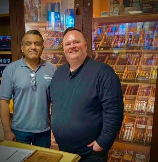 Owner of The Shenfield Wine Co. and Essex Cigar Company Nish Patel with leading UK cigar blogger the London Cigar Smoker.